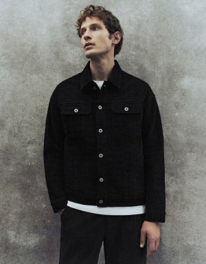 Black Urban Revivo Standard Sleeve Men's Denim Jackets | 53847CYOL