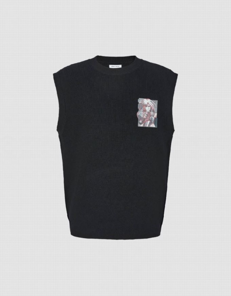 Black Urban Revivo Crew Neck Knitted Men's Cardigan | 50634LMEK