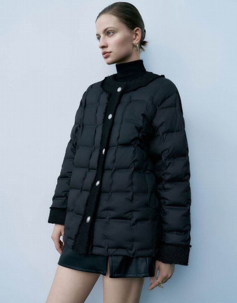 Black Urban Revivo Crew Neck Women's Down Jackets | 59713PYCG