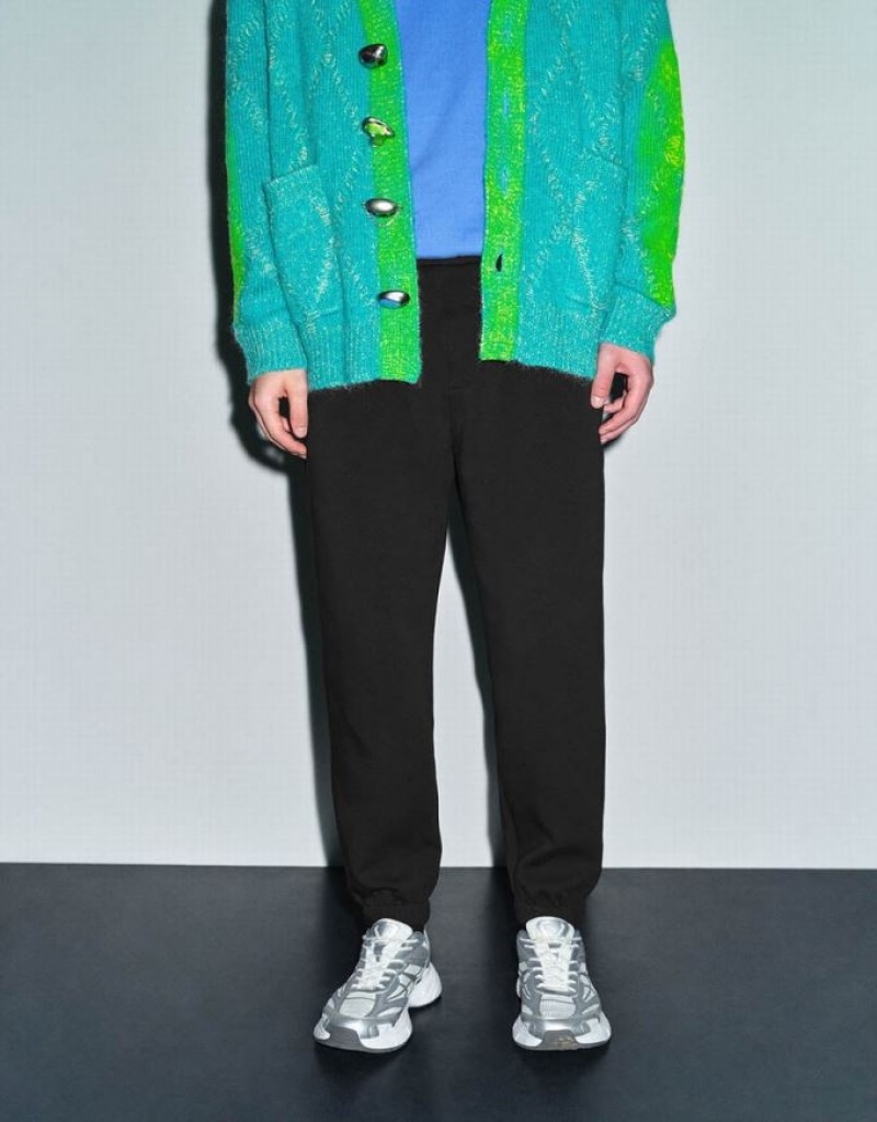 Black Urban Revivo Elastic Waist Men\'s Joggers | 81032RNOU