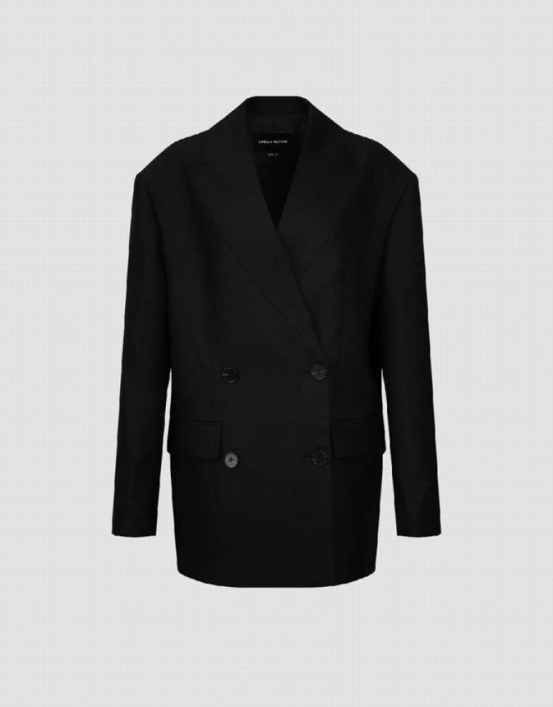 Black Urban Revivo Tailored V-Neck Women's Blazers | 42735QJFX
