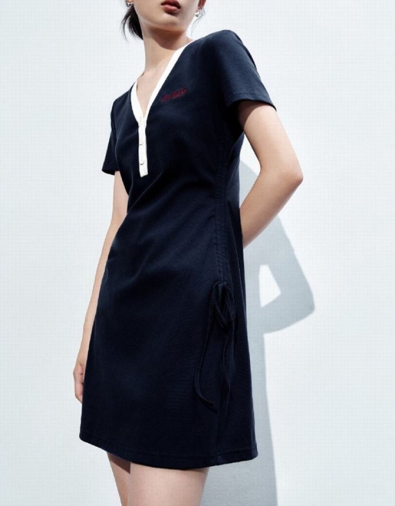 Blue Urban Revivo Lace Up Side A-Line Women's Dress | 17652ADFO
