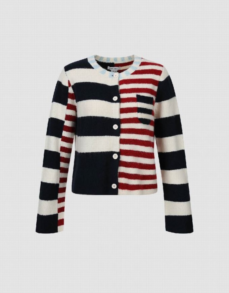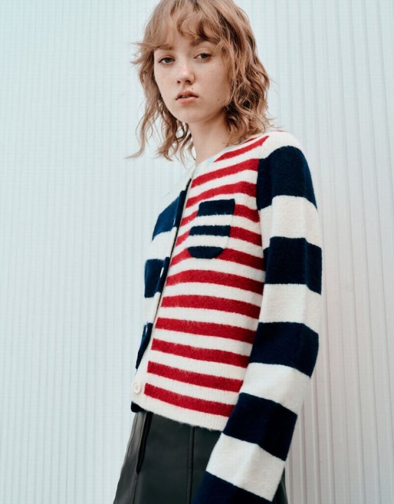 Blue Urban Revivo Two Toned Striped Knitted Women's Cardigan | 56402QTUS