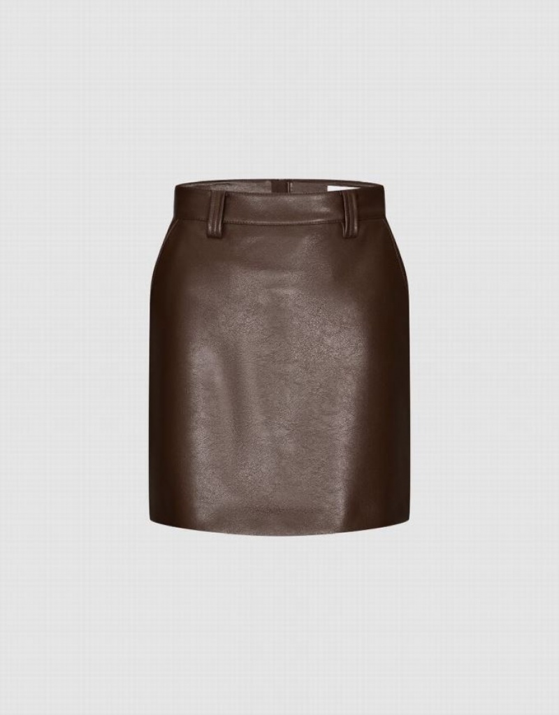 Brown Urban Revivo Vegan Leather Mini Straight Women\'s Skirts | 28031NGVY