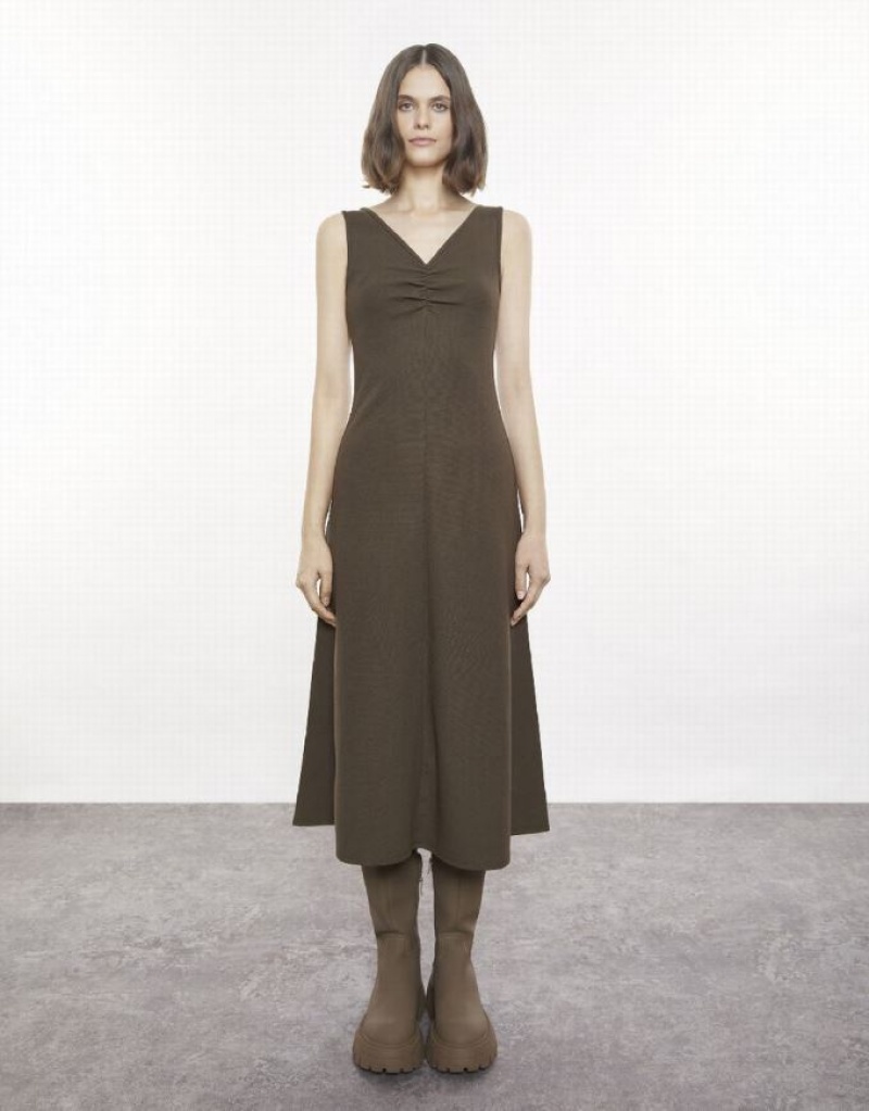 Green Urban Revivo Plain Midi Women's Midi Dress | 85719ULMK