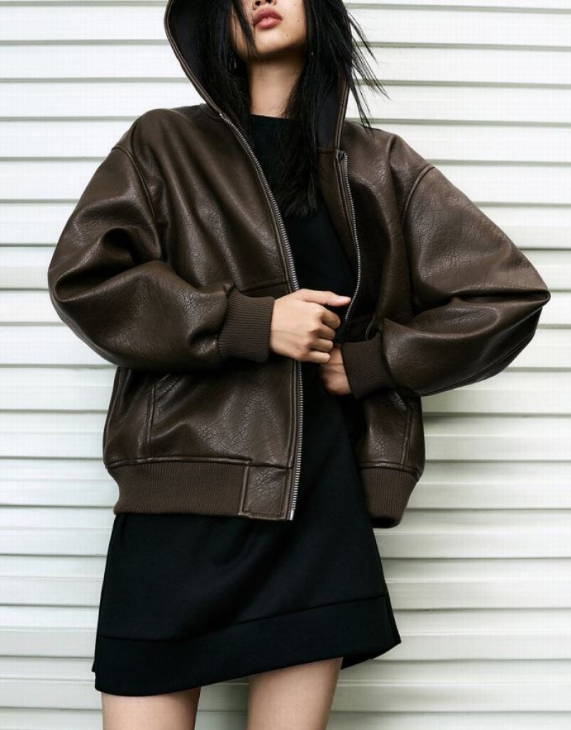 NZ$137.89 NZ$93.76Green Urban Revivo Zipper Front Vegan Leather Women's Hooded Jackets | 17369ZVDW