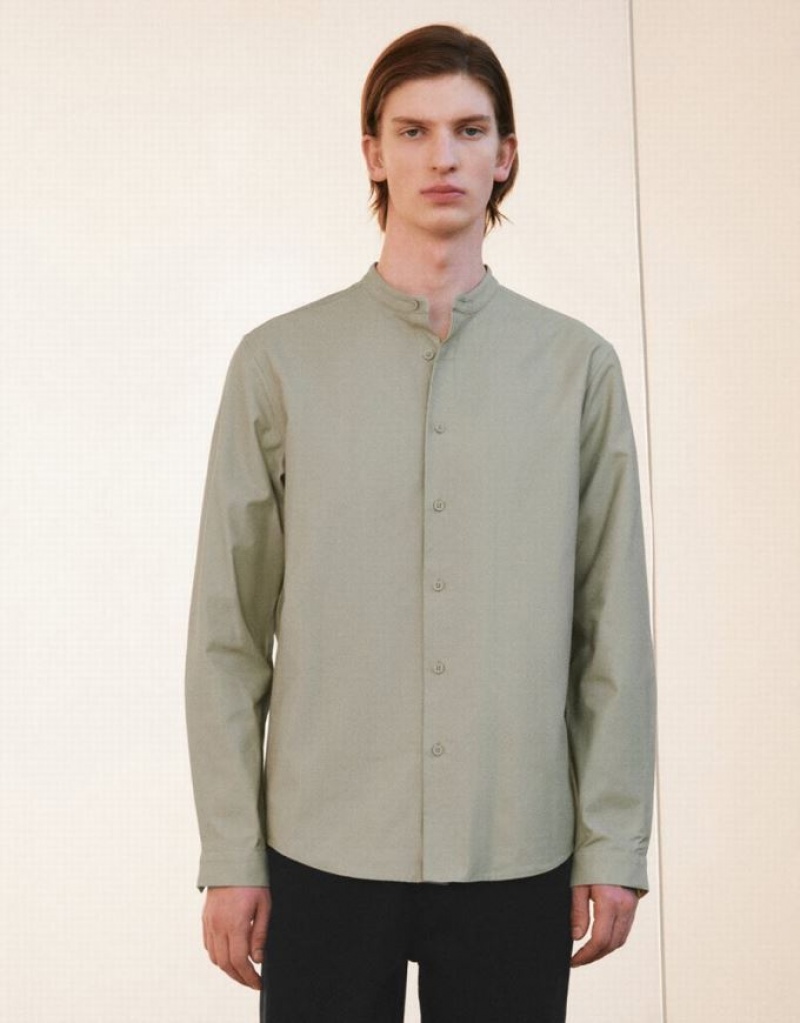 Khaki Urban Revivo Crew Neck Straight Men's Shirts | 41280RYHZ