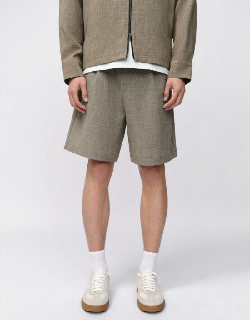 Khaki Urban Revivo Loose Men\'s Shorts | 86215WMGT