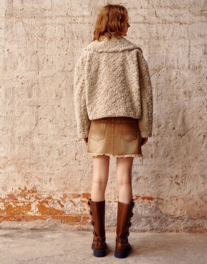 Khaki Urban Revivo Straight Furry Women\'s Coats | 54621DFIV