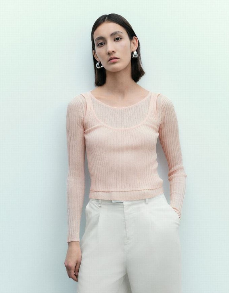 Pink Urban Revivo Textured Rib Knit Women's Cardigan | 51274LXPM