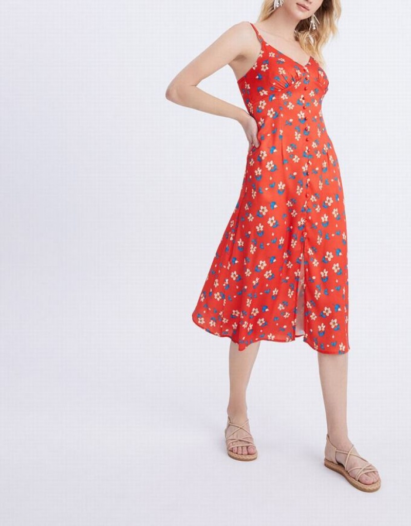 Red Urban Revivo Floral Print Cami Midi Women\'s Midi Dress | 50467KFWG