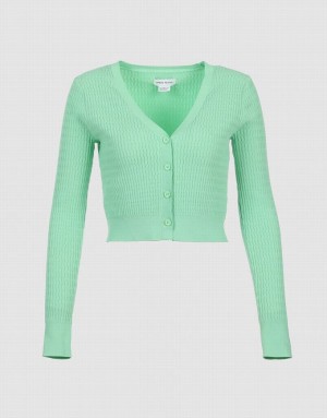 White Urban Revivo Bow Tie Decor V-Neck Knitted Women's Cardigan | 65340DSCM