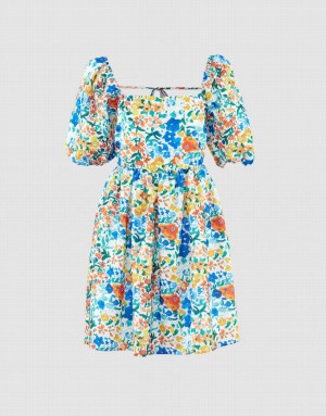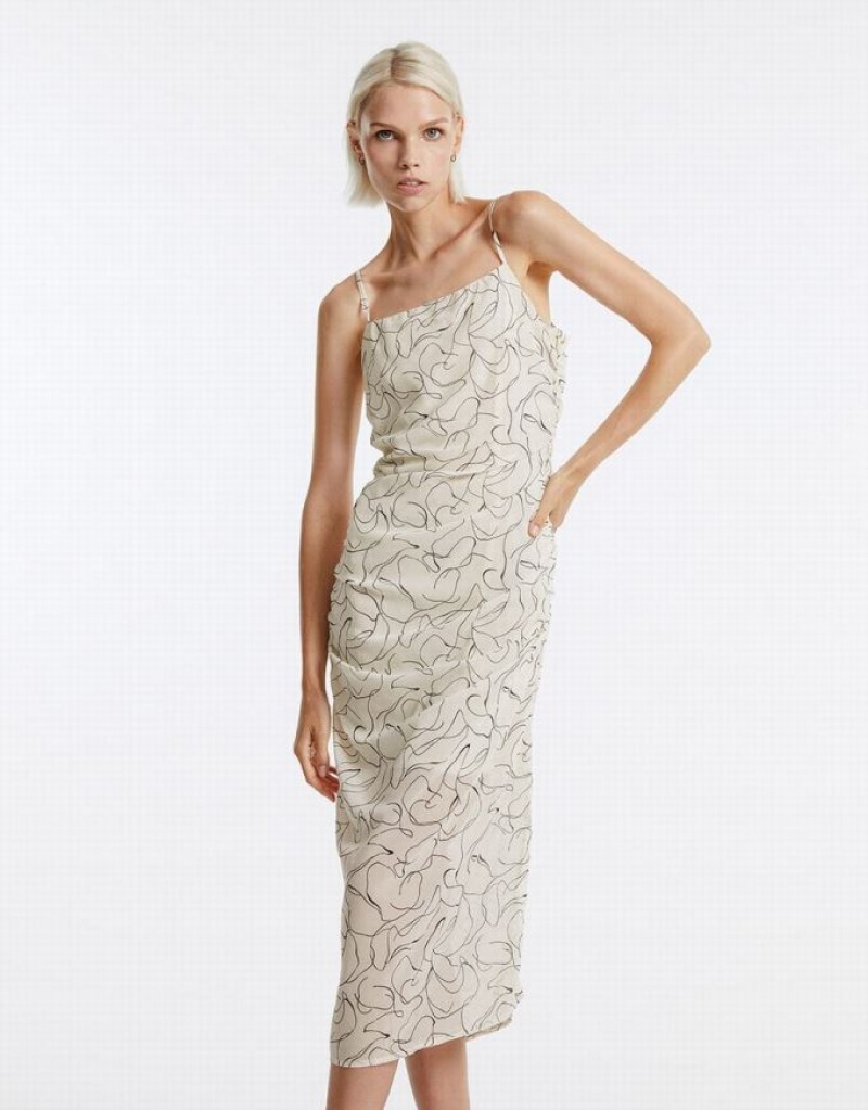 White Urban Revivo Printed Strappy Women\'s Casual Dress | 56417TSAC