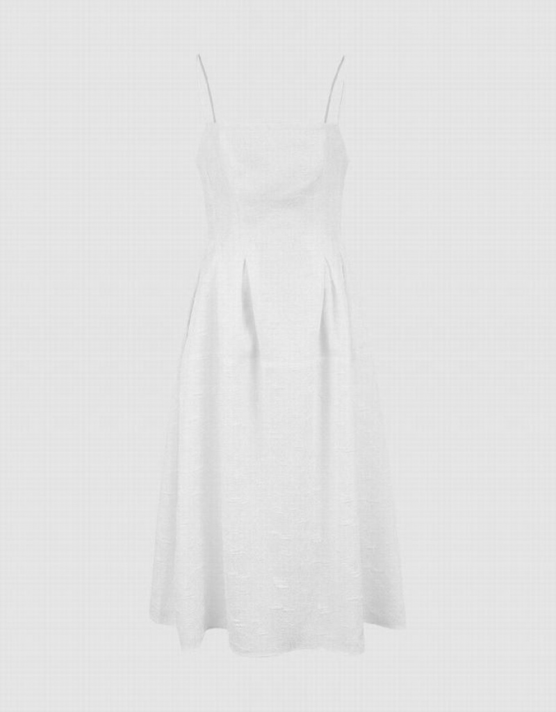 White Urban Revivo Textured Cami A-Line Women's Dress | 79530RSCX
