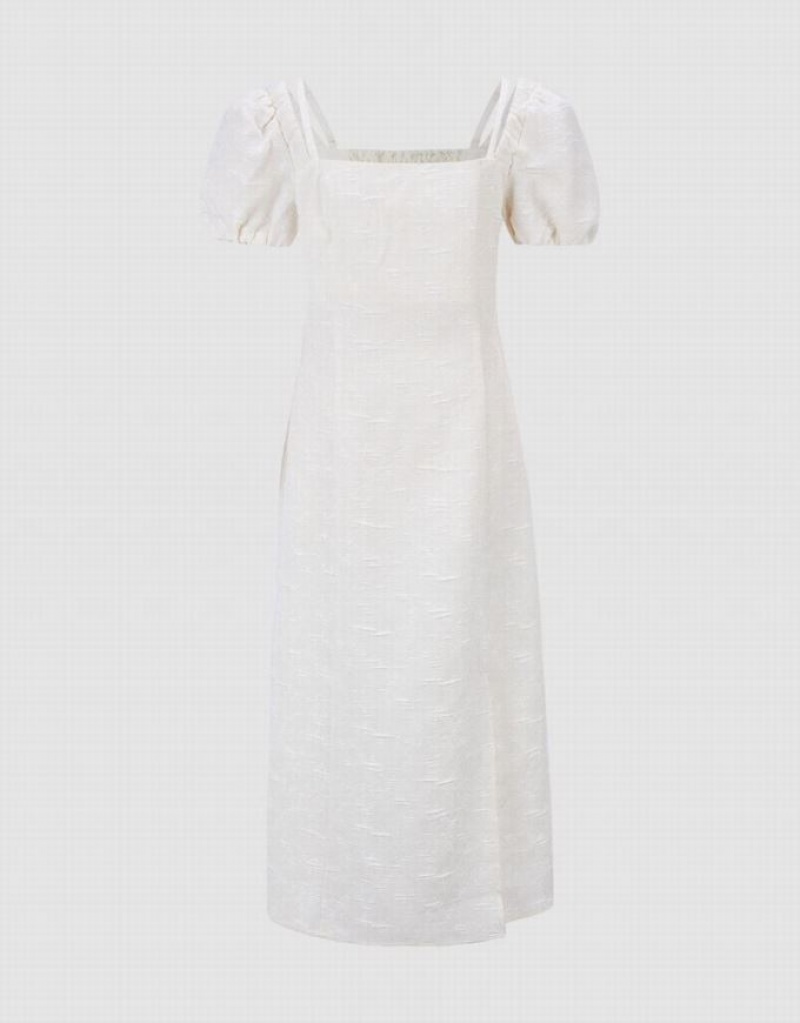 White Urban Revivo Textured Off Shoulder Skater Women's Short Dress | 02957FJOY