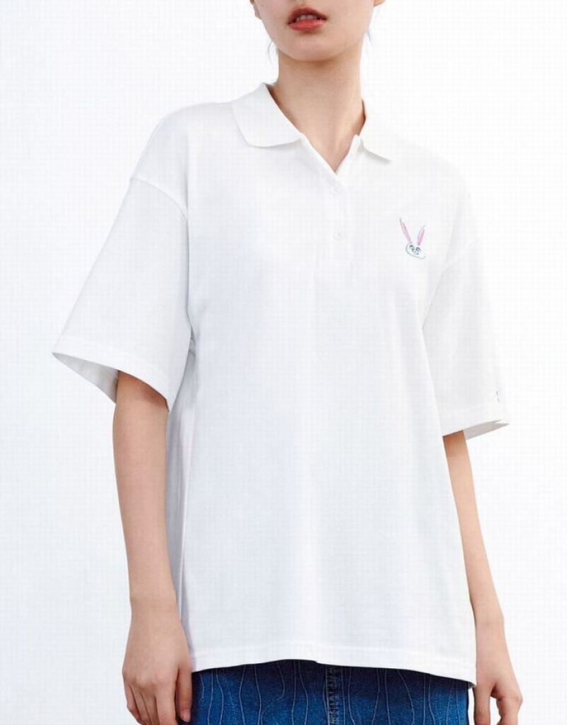 White Urban Revivo The Secret Life Of Pets Women\'s Polo Shirts | 50724FQHM