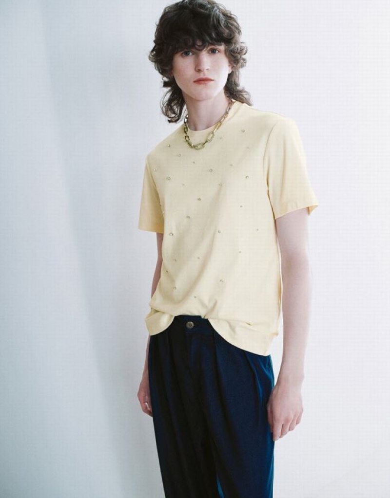 Yellow Urban Revivo Crew Neck A-Line Women\'s T-Shirts | 63728AENV
